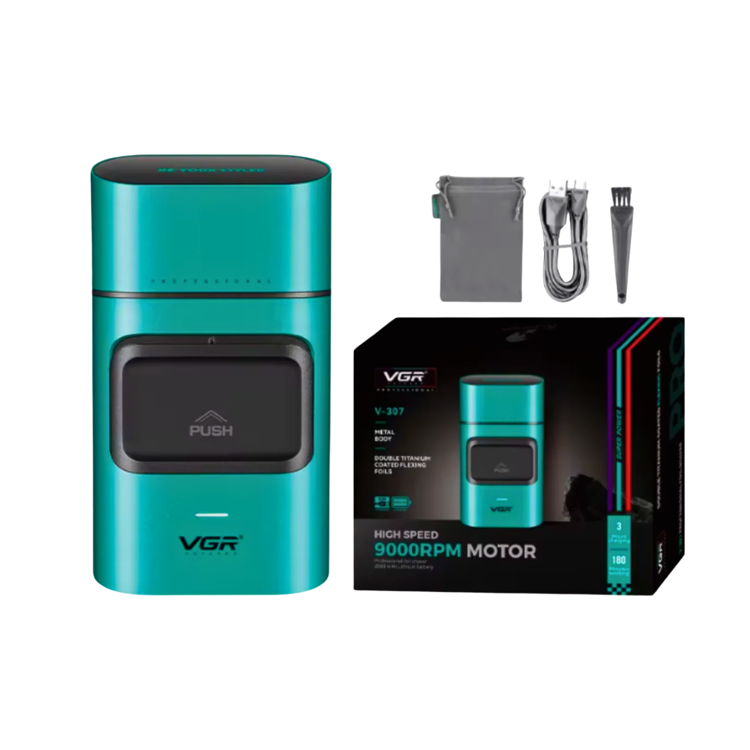 La VGR V-307 es una afeitadora eléctrica profesional diseñada para ofrecer un afeitado cómodo, rápido y preciso tanto en seco como en húmedo. Su diseño ergonómico y compacto, junto con sus cuchillas flotantes de acero inoxidable, se adapta perfectamente a los contornos del rostro. Con carga rápida USB y hasta 120 minutos de autonomía, es la opción ideal para el hombre moderno que busca eficiencia y estilo en su rutina diaria.