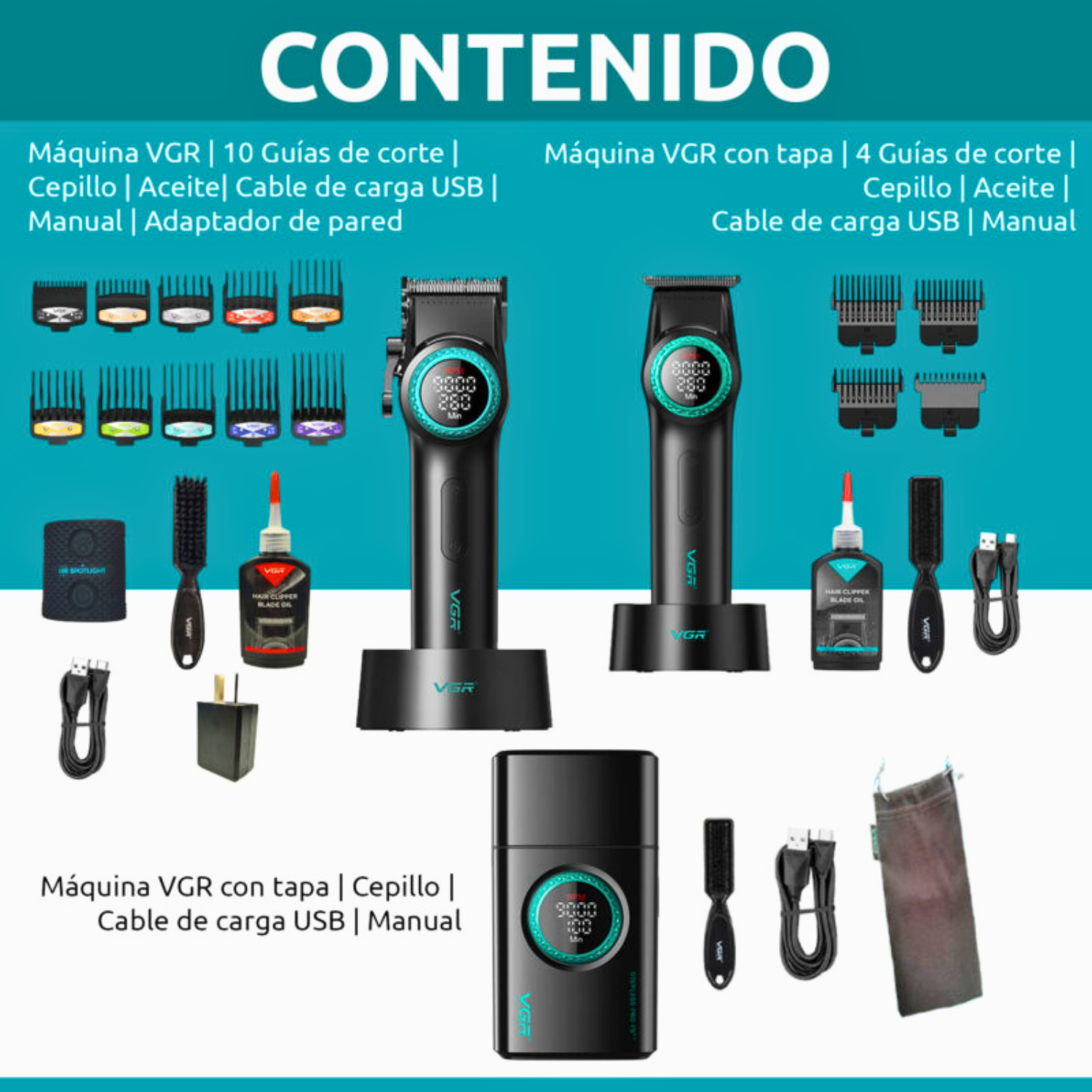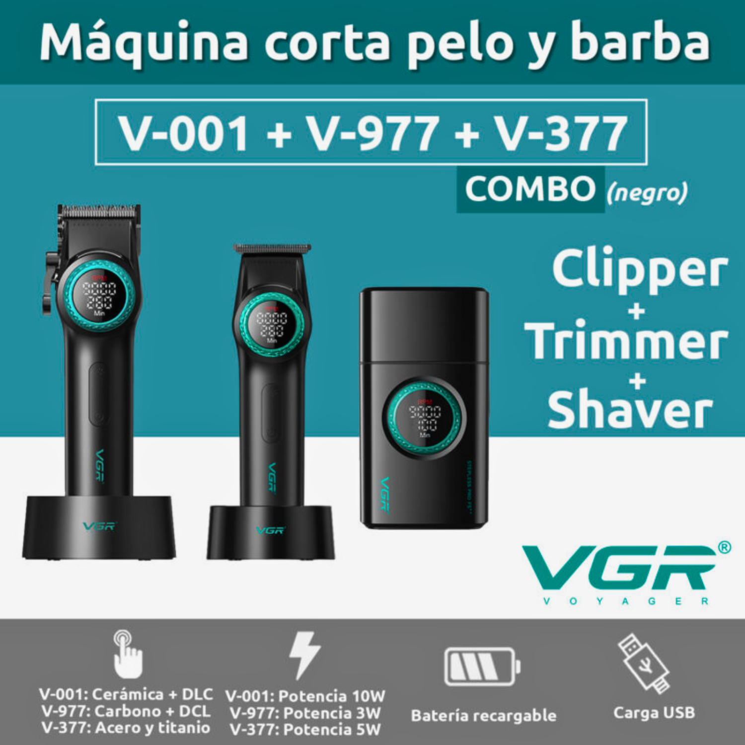 Incluye: Cortapelo VGR V001 + Patillera V977 + Afeitadora V377
