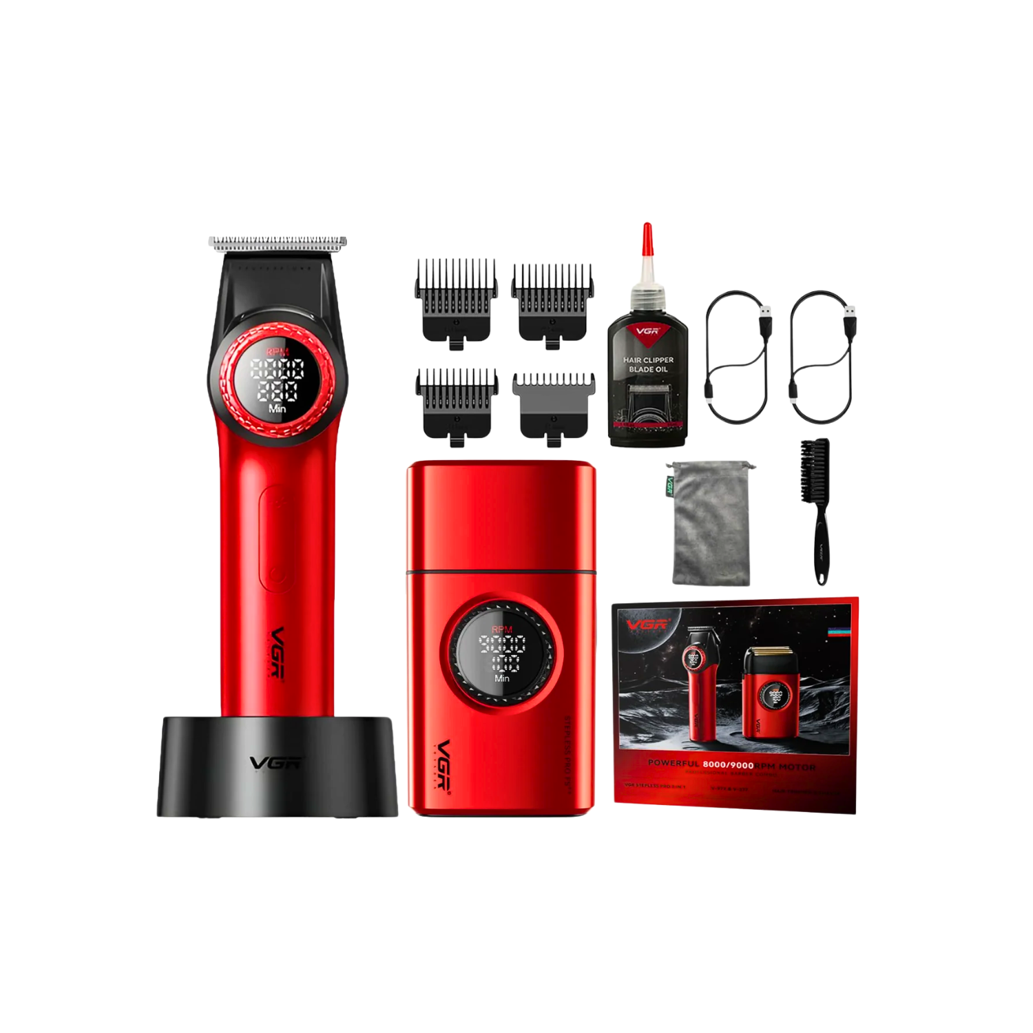 Barber Combo VGR Cortapelo V001 + Patillera V977+ Shaver V377 Rojo