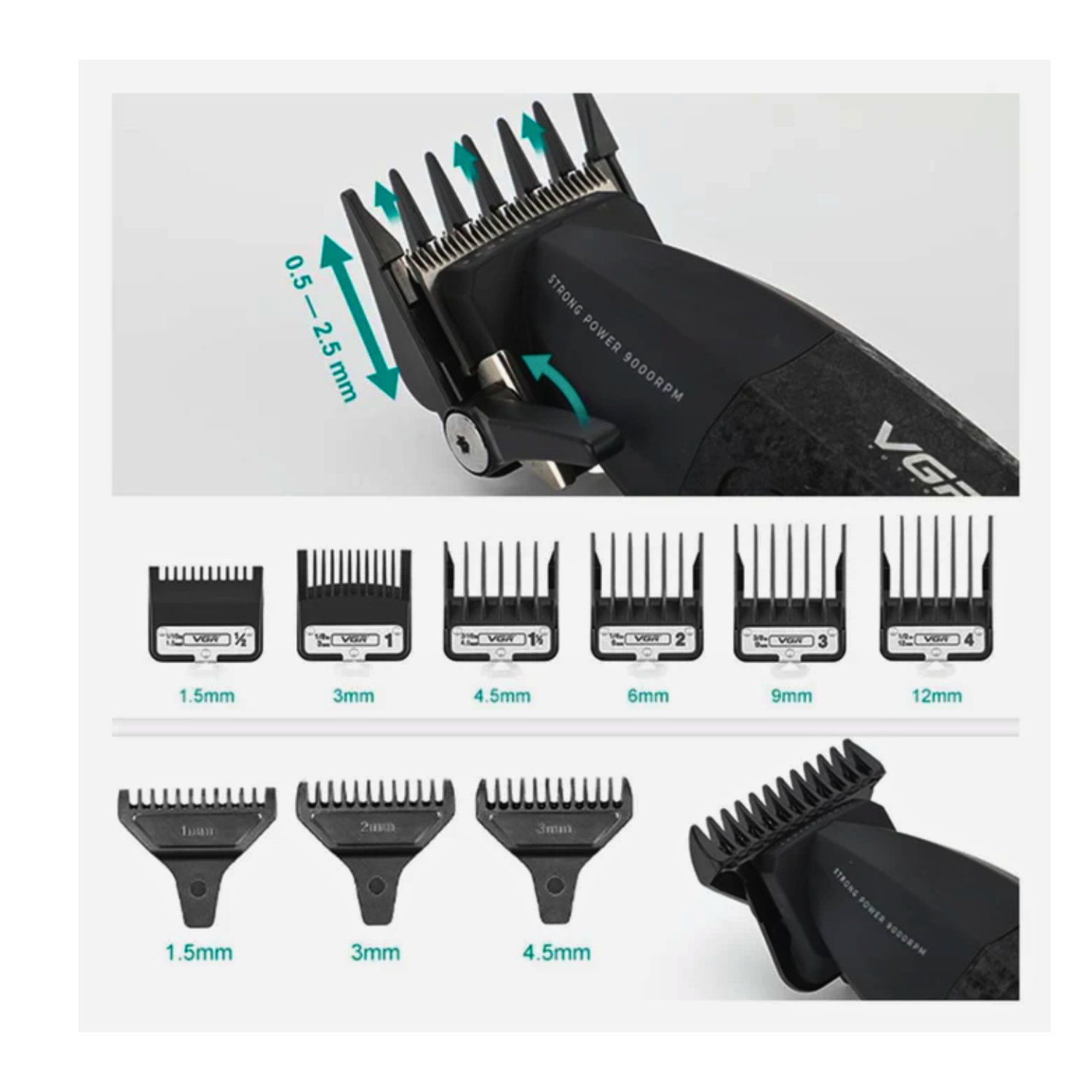La cortadora V640 cuenta con un motor inteligente de hasta 9000 RPM, cuchillas de cerámica con recubrimiento DLC (Diamond-Like Carbon) y doble velocidad (7000/9000 RPM), lo que permite cortes suaves incluso en cabello grueso. Su batería de 2500 mAh ofrece hasta 250 minutos de uso inalámbrico, ideal para jornadas intensas de trabajo.