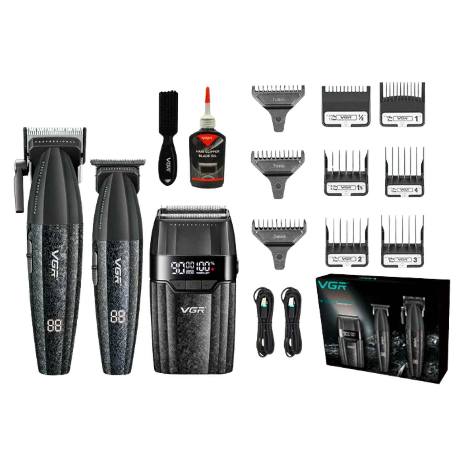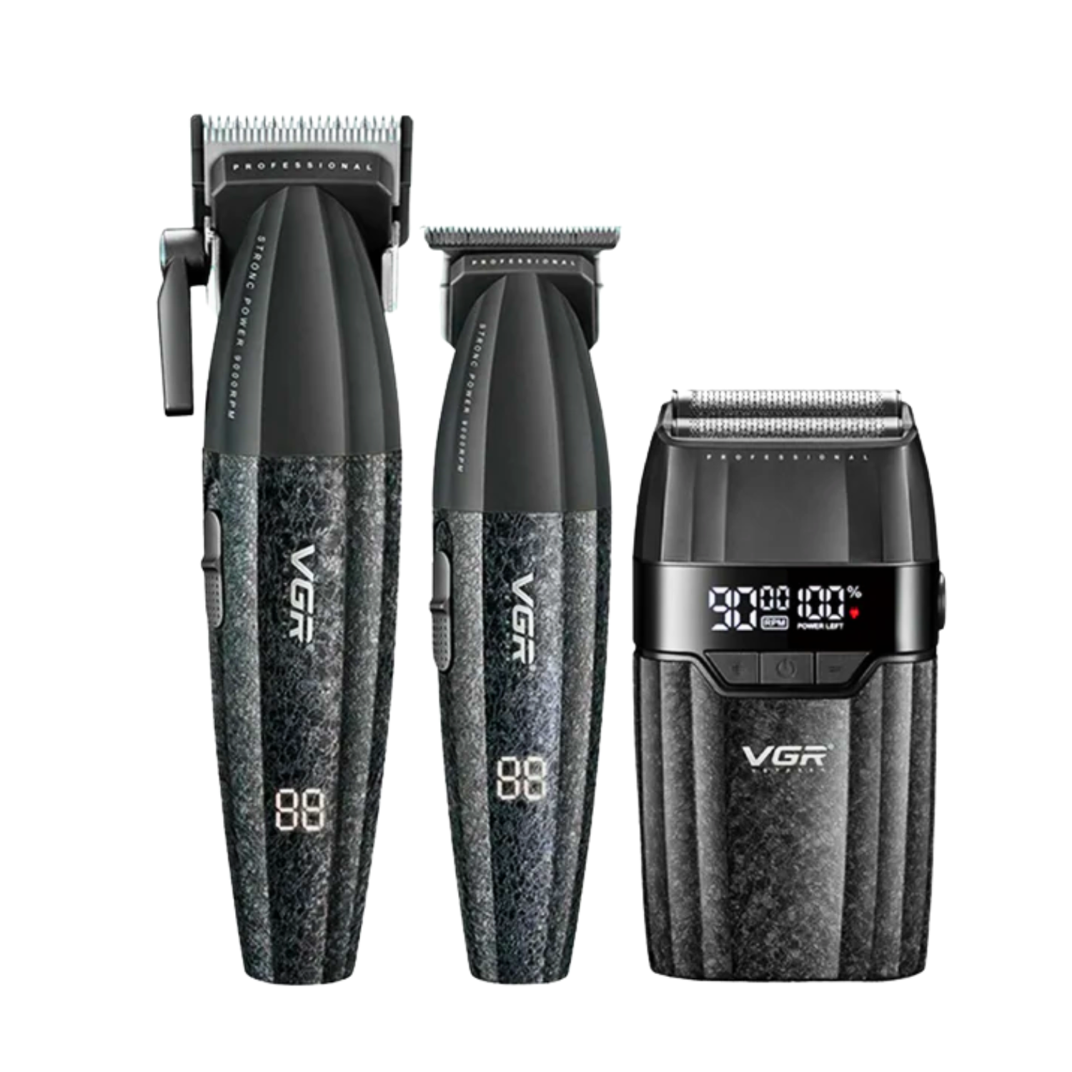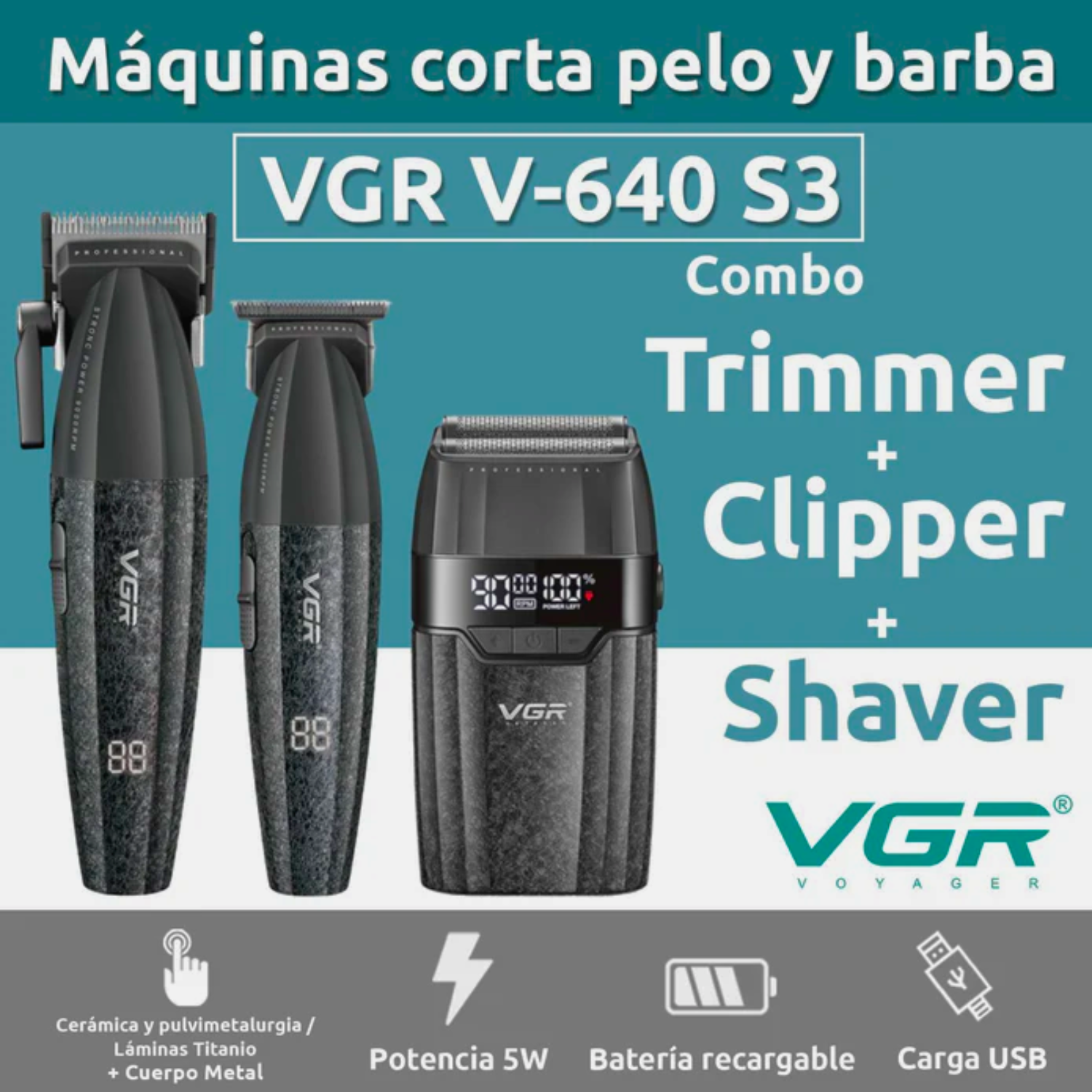 El VGR V-640S3 es un set profesional 3 en 1 diseñado para ofrecer un rendimiento completo en el cuidado del cabello y la barba. Incluye una cortadora, una patillera y una afeitadora, cada una con motor de alta velocidad y batería recargable de larga duración. Es ideal tanto para uso profesional en barberías como para uso personal en casa, ofreciendo resultados precisos, rápidos y uniformes.