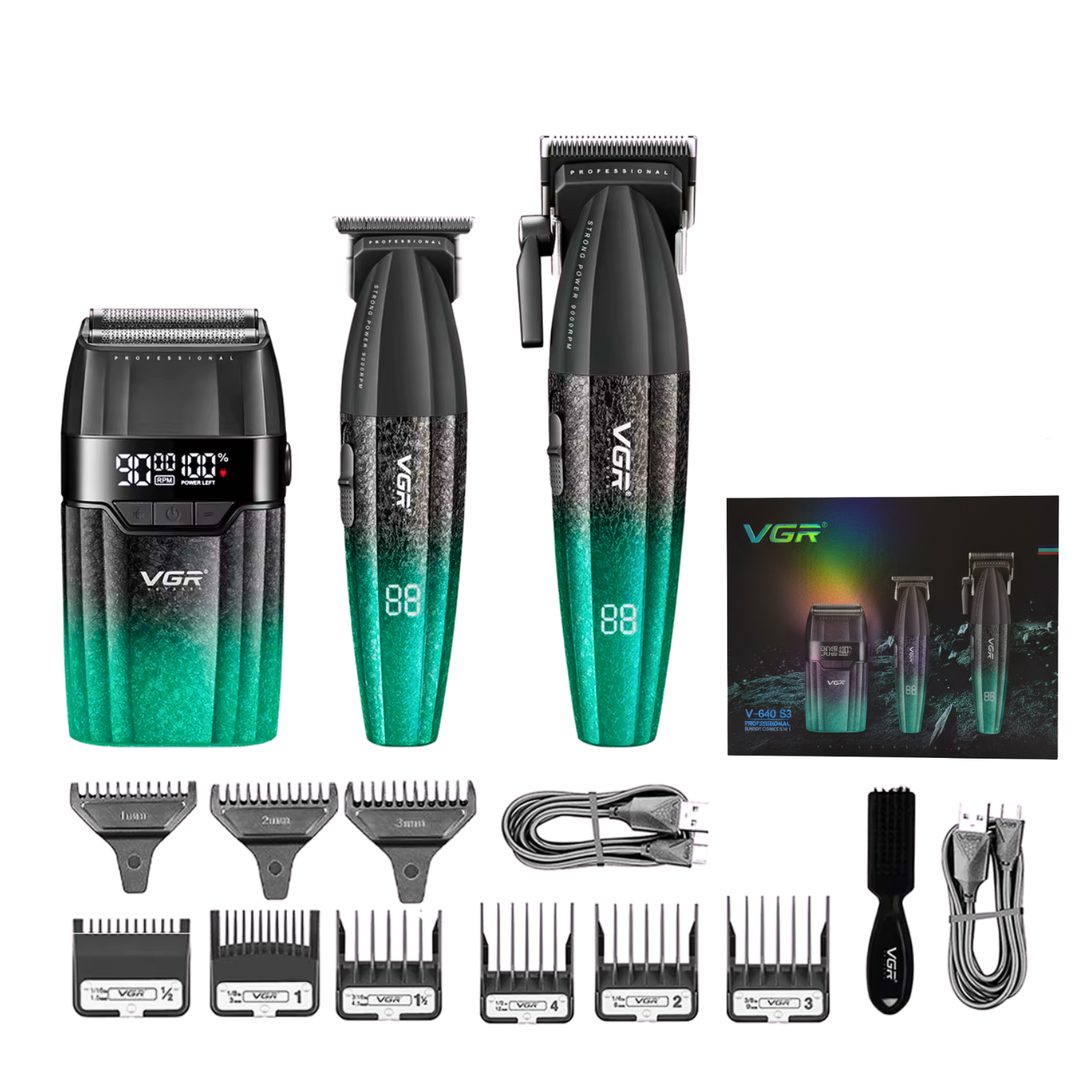 El VGR V-640S3 es un set profesional 3 en 1 diseñado para ofrecer un rendimiento completo en el cuidado del cabello y la barba. Incluye una cortadora, una patillera y una afeitadora, cada una con motor de alta velocidad y batería recargable de larga duración. Es ideal tanto para uso profesional en barberías como para uso personal en casa, ofreciendo resultados precisos, rápidos y uniformes.