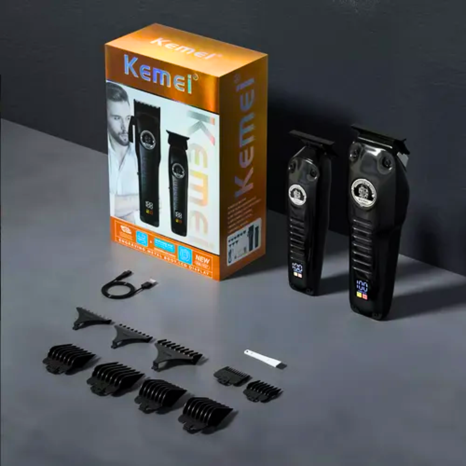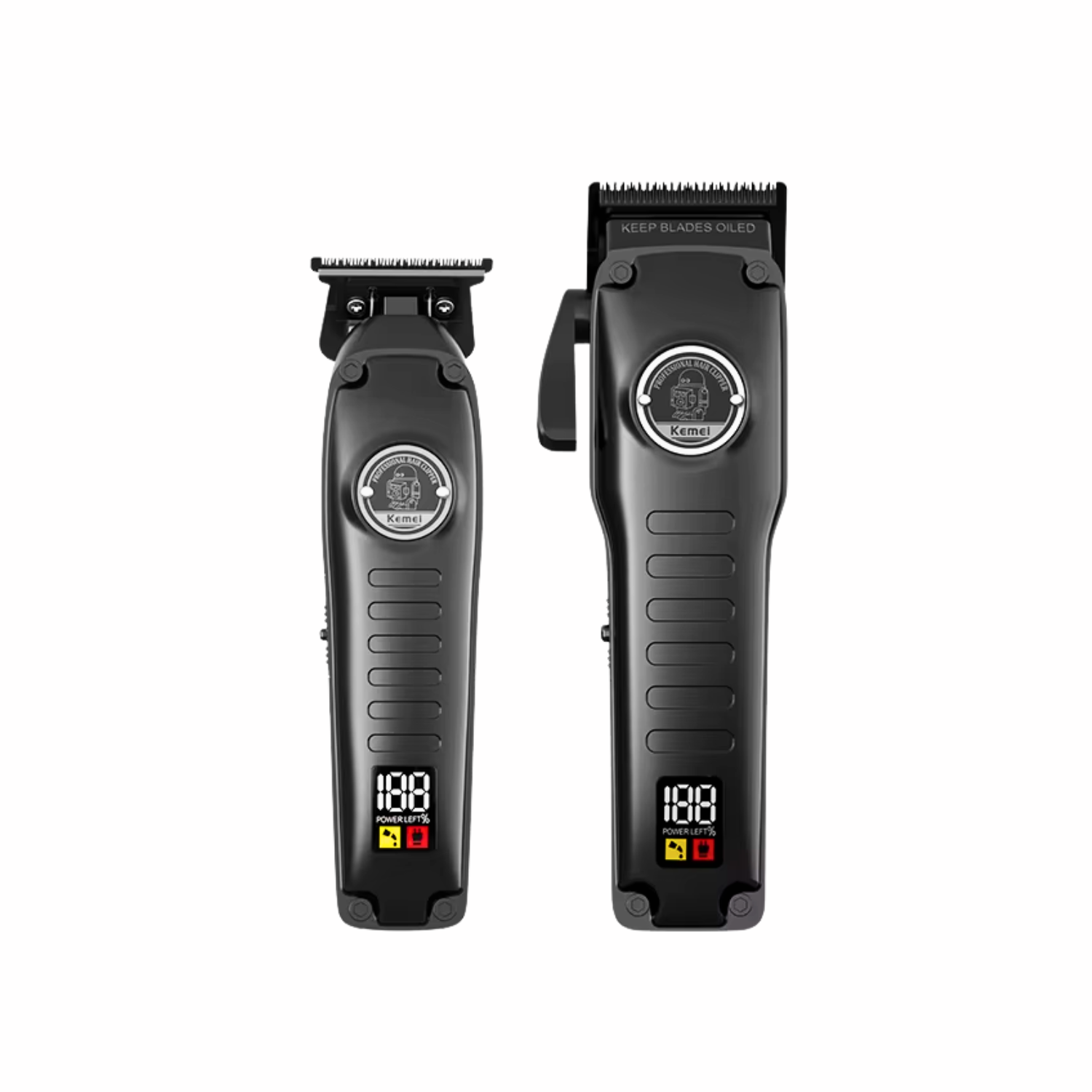 Combo Kemei Profesional de Cortadora y Patillera KM 1827 Negro
