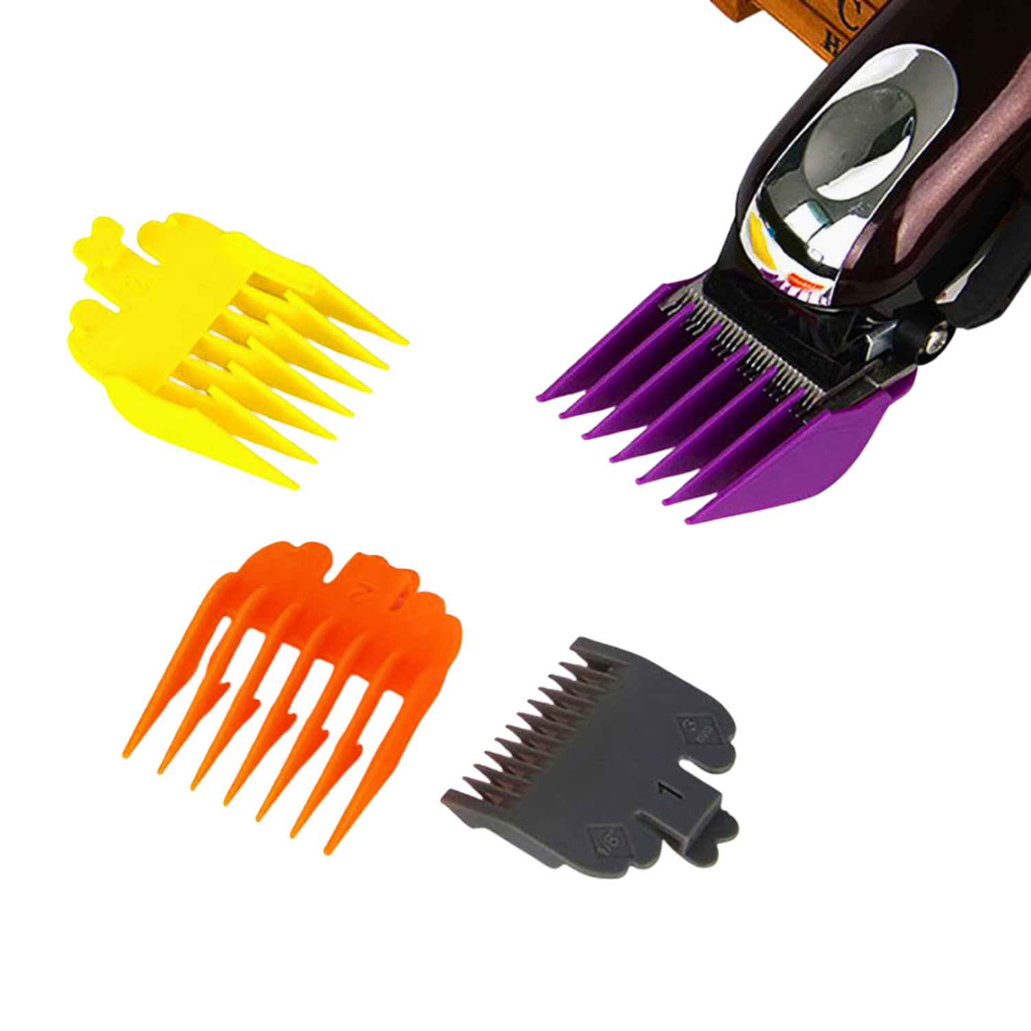Un set de peines guía de corte es un accesorio esencial para máquinas de cortar pelo. Cada pieza se ajusta a la cuchilla de la cortadora mediante un clip de plástico, permitiendo obtener diferentes longitudes de corte sin necesidad de cambiar la máquina.