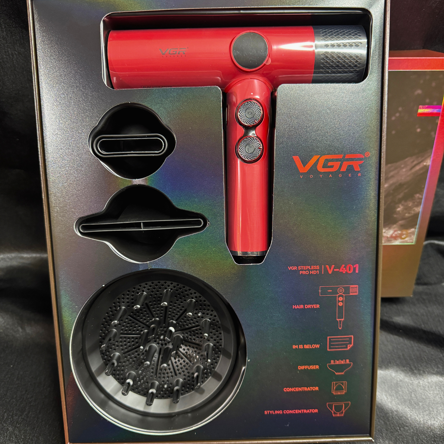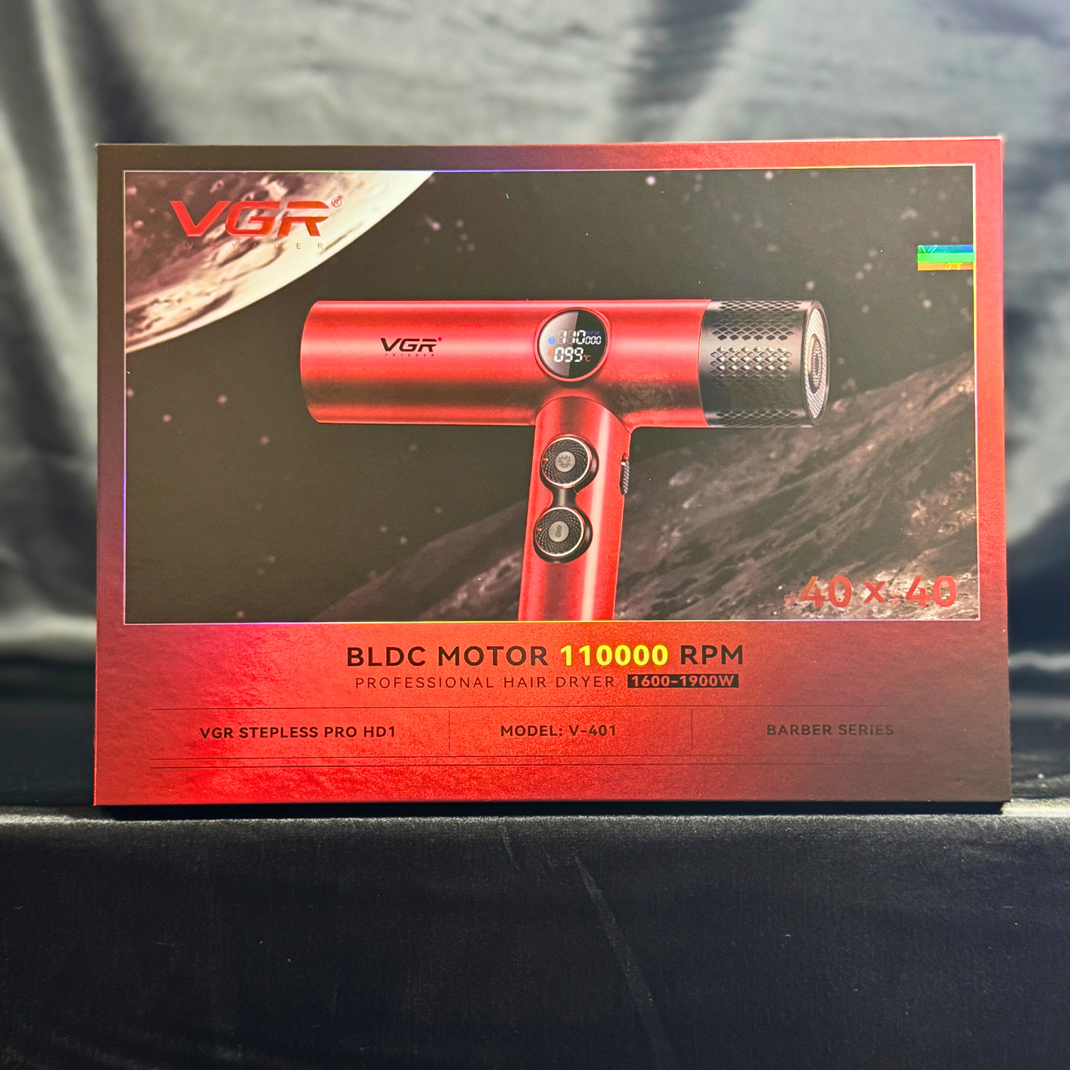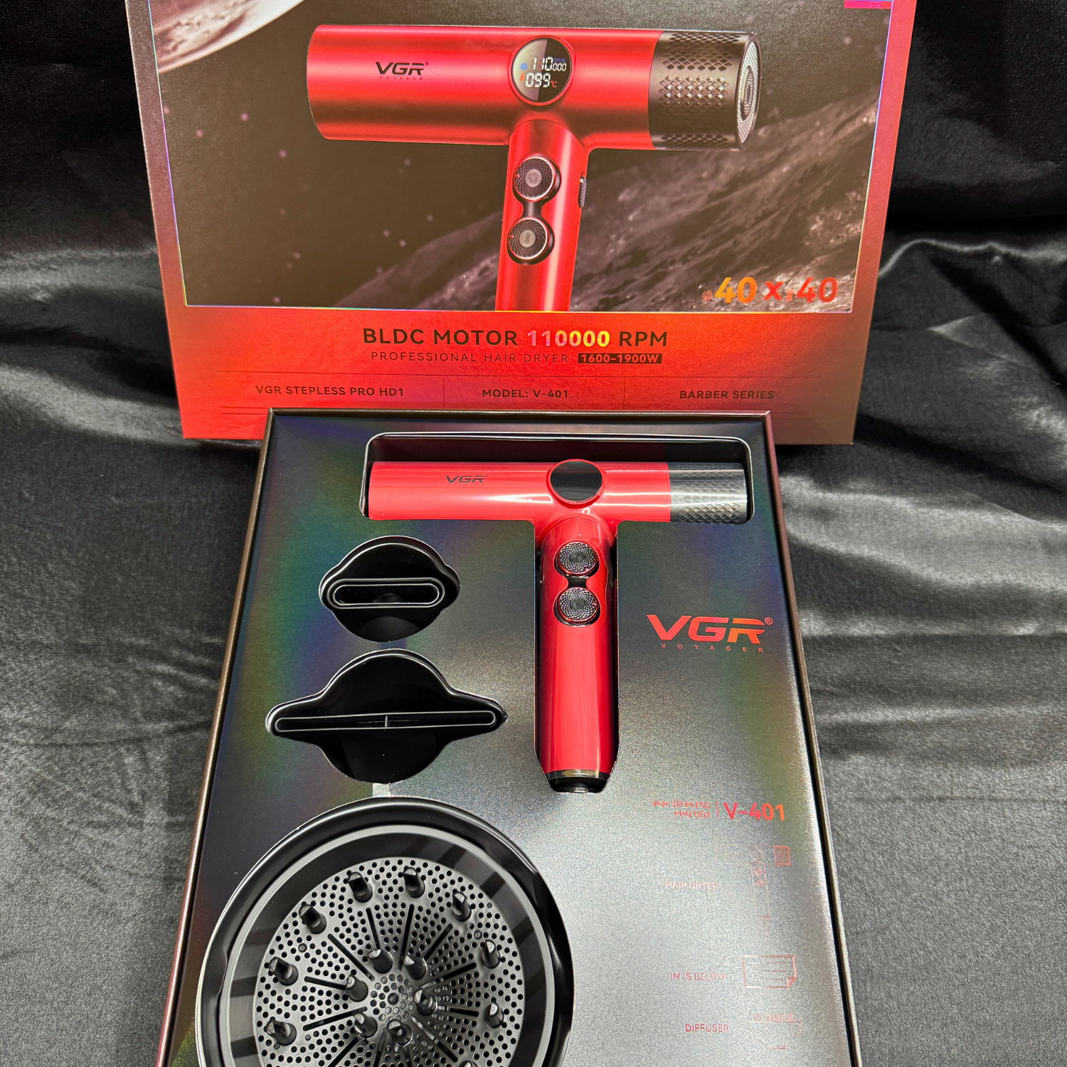 El VGR V-401 es un secador de pelo profesional de alto rendimiento, diseñado con tecnología de última generación para ofrecer un secado rápido, eficiente y seguro. Equipado con un motor sin escobillas de 110.000 rpm, este secador genera un flujo de aire potente que reduce drásticamente el tiempo de secado, cuidando a la vez la salud del cabello.