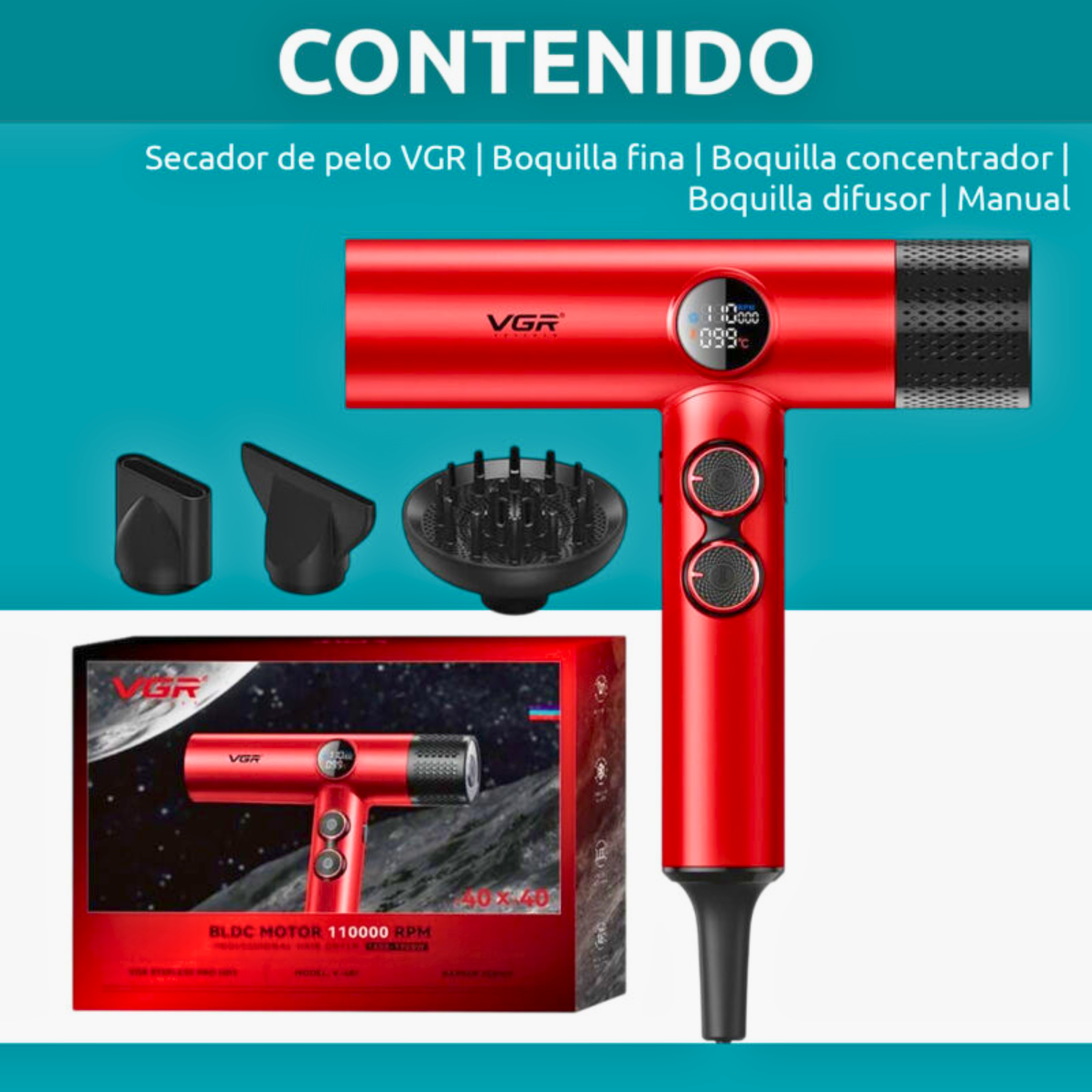 Descripción del Producto: Secador de Pelo VGR Profesional V-401 110000rpm Frío/Calor