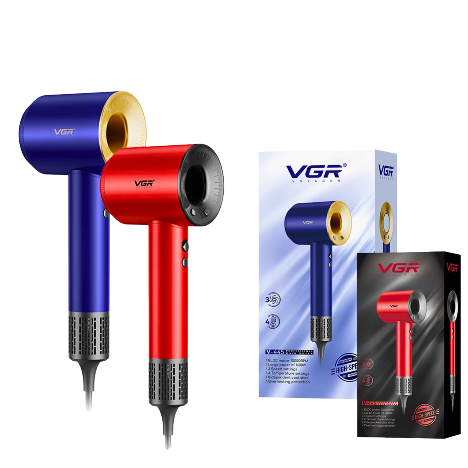El VGR V-445 es un secador de pelo de alto rendimiento, diseñado para ofrecer un secado profesional, rápido y seguro. Equipado con un potente motor digital sin escobillas que alcanza hasta 110.000 RPM, permite un secado hasta tres veces más rápido que los secadores tradicionales, con menor ruido y mayor eficiencia energética.