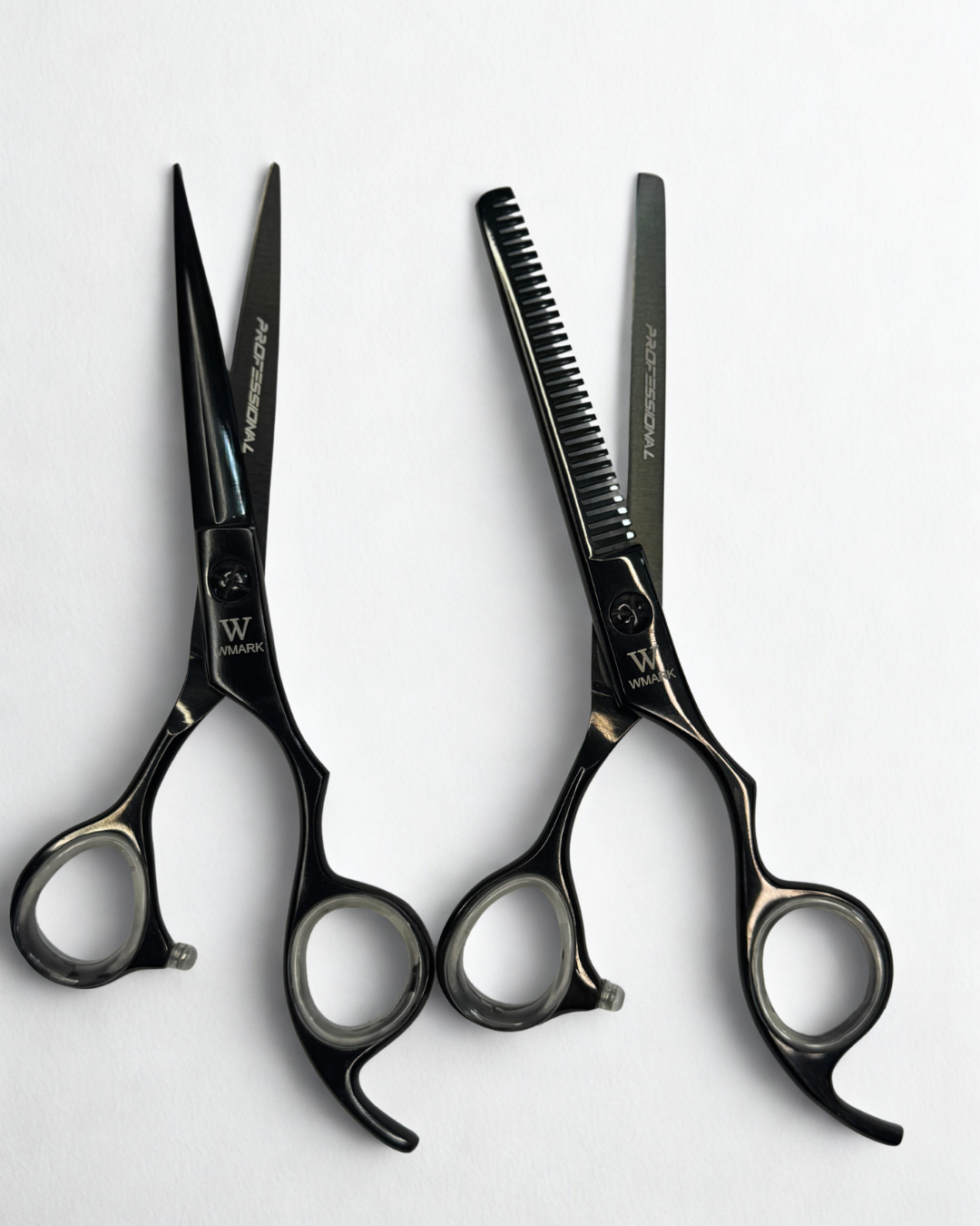 el kit profesional de tijeras de peluquería Wmark, diseñado para estilistas y barberos que buscan precisión, durabilidad y comodidad en cada corte. Este set incluye una tijera de corte filo navaja de 6″ para acabados limpios y una tijera esculpidora ideal para texturizar y adelgazar el cabello con suavidad.